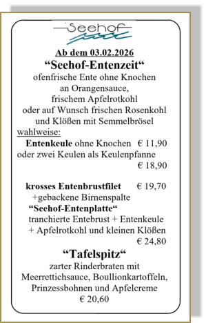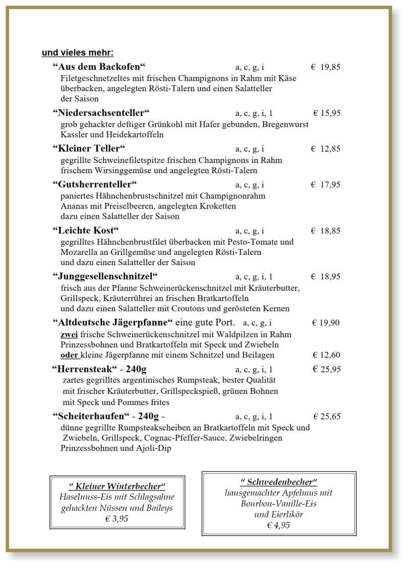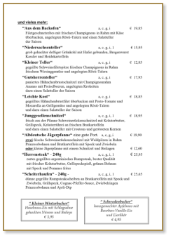 Diese Speisekarte führen wir